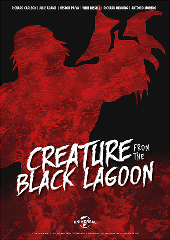 Create a modern and abstract artwork for a movie poster to be used for a re-launch of the original b-grade movie ‘Creature from The Black Lagoon. 2018